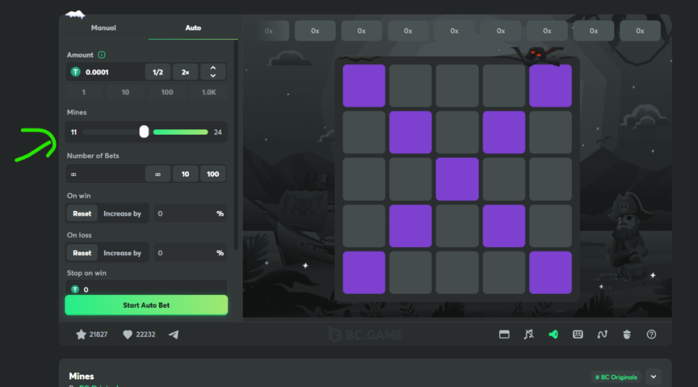 Survive the explosive challenge! Open 9 safe tiles on a 11-mine board without triggering any mines.